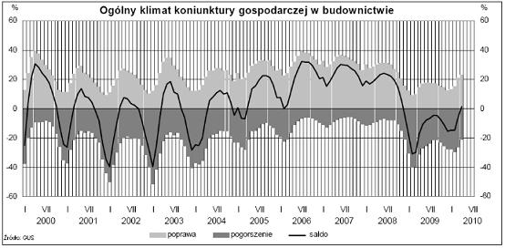 Po raz pierwszy od końca 2008 roku liczba przedsiębiorców, którzy pozytywnie oceniają klimat koniunktury jest większa od tych, których sygnalizują jego pogarszanie.To może sugerować, że sektor najgorsze ma już za sobą, tym bardziej, że jednocześnie wyhamowuje tendencja spadkowa w produkcji budowlanej, a inwestycje mieszkaniowe ruszyły z kopyta.