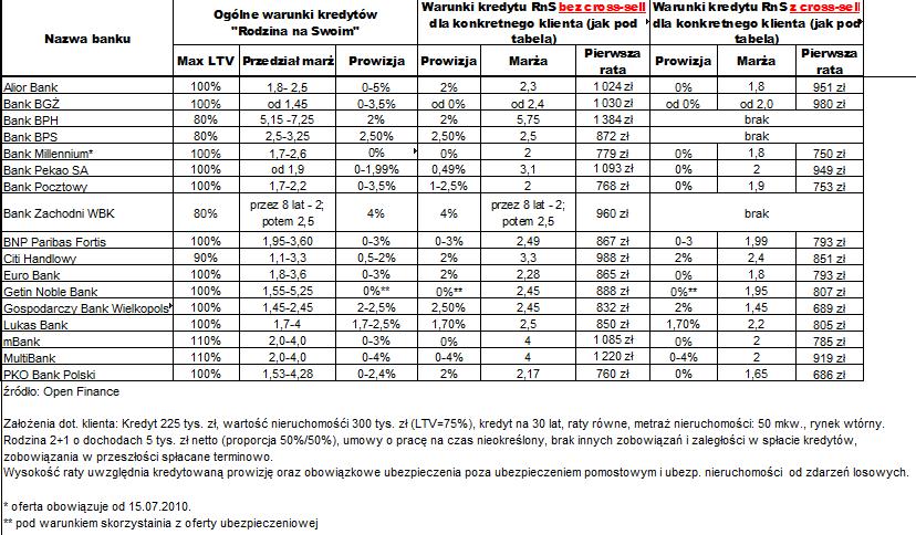 W sprzedaży wiązanej (ang: cross-sell) warszawskiej rodzinie 2+1 o zarobkach 5 tys. zł netto i posiadającej 25 proc. wkładu własnego, marże poniżej 2 pkt proc. oferuje także siedem innych banków: Alior Bank (1,8 pkt proc.), Bank Millennium (1,8 pkt proc.), Bank Pocztowy (1,9 pkt proc.) BNP Paribas (1,99 pkt proc.), Euro Bank (1,8 pkt proc.), Getin Noble Bank (1,95 pkt proc.) i PKO BP (1,65 pkt proc.).