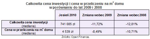 Cena metra kwadratowego w tym czasie stopniała o 8,5 proc. i wyniosła 4540 zł. Wzrosły natomiast metraż domu (o 2,8 proc., do 174m2) i wielkość działki (aż o 28 proc., z 400 do 512 m2).