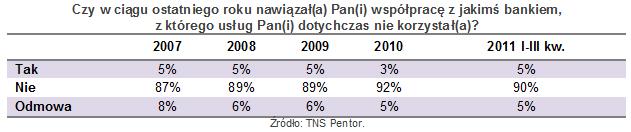 Badania rynku nie pozostawiają jednak złudzeń ? mobilność klientów nie rośnie. Polacy obejrzą i docenią reklamy, pomyślą nawet jakby to było dobrze zmienić bank, ale do czynów dochodzi niebywale rzadko ? zwraca uwagę Marcin Idzik z TNS Pentor. Wyjątek na tym tle stanowią osoby związane z bankiem mniej niż dwa lata. Im ?zdrada? przychodzi zdecydowanie łatwiej. Generalnie jednak od ponad pięciu lat, na taki krok decyduje się zaledwie co dwudziesta osoba. I odsetek ten się nie zmienia.