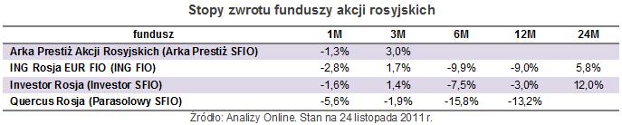 Pod względem kosztów fundusze funduszy wcale nie różnią się od zwykłych funduszy. Specjalnej różnicy nie widać też w wynikach, co widać na przykładzie funduszy akcji rosyjskich. Fundusze Arki i Quercusa zarządzane są ?z kraju?, zaś ING i Investors to fundusze funduszy.