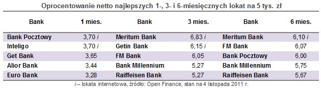 Coraz wyższe oprocentowanie lokat terminowych na rynku powoduje, że kolejne banki poddają się trendowi i zaczynają płacić wyższe odsetki. Instytucje finansowe zaczynają sięgać wzrokiem coraz dalej, ponieważ najmocniej rosną stawki sześcio- i dwunastomiesięcznych depozytów. Oznacza to, że nie dostrzegają one szans na szybką poprawę kondycji zagrożonych gospodarek europejskich i wciąż budują poduszkę bezpieczeństwa na wypadek szoków płynnościowych, jakie miały miejsce pod koniec 2008 roku. Wyższe oprocentowanie średnioterminowych lokat z kapitalizacją dzienną oznacza również, że przynajmniej część banków przestaje zważać na zapowiedź wyeliminowania depozytów antypodatkowych. Powyborczy nieład raczej nie sprzyja temu, aby zmiany zaokrąglania podstawy opodatkowania i podatku określone w ordynacji podatkowej zostały wprowadzone od 1 stycznia 2012 roku. Scenariusza tego trzyma się nawet PKO BP, który zaoferował klientom lokaty kończące się znacznie później niż na początku przyszłego roku (5-, 10- i 15-miesięczne).
