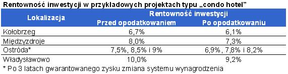 * Operator hotelu podpisuje z nabywcą wieloletnią umowę najmu oferując często z góry określony poziom czynszu,