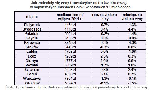 Po kilkumiesięcznej stagnacji indeks cen transakcyjnych wreszcie zanotował bardziej wyraźną zmianę wartości ? niestety w dół. Takiego zachowania indeksu można było jednak oczekiwać. W ostatnim czasie przewagę zyskują bowiem te czynniki, które na ceny mieszkań wpływają negatywnie, zwłaszcza rosnąca nierównowaga pomiędzy popytem a podażą. Z jednej strony deweloperzy wprowadzają do sprzedaży rekordowe liczby lokali (wg REAS w I półroczu br. do sprzedaży wprowadzono 21,3 tys. jednostek, lepsze pod tym względem było tylko I półrocze 2007 roku), z drugiej zaś spada sprzedaż. Na rynku jest przeprowadzanych coraz mniej transakcji, co można zaobserwować choćby na przykładzie liczby operacji używanych do obliczania naszego indeksu. Negatywnie na popyt oddziaływać będą zmiany w programie RnS (m.in. znaczna obniżka limitów cenowych), malejąca zdolność kredytowa potencjalnych nabywców mieszkań (pomimo coraz lepszej oferty banków) oraz niepewna ? w sensie globalnym ? sytuacja gospodarcza, która może zniechęcać do kupowania mieszkania właśnie w tym czasie. Spodziewamy się, że indeks do końca roku pozostanie w trendzie bocznym lub zanotuje lekki, kilkuprocentowy spadek. Na wzrosty cen mieszkań nie ma co liczyć.